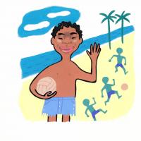 Sense títol (Nen saludant amb pilota en una platja) Objecte físic