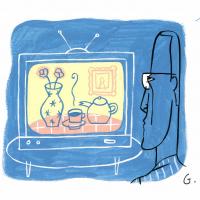 Sense títol (Home mirant natura morta al televisor) Objecte físic