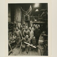 Retrat de Leandre Cristòfol al seu taller amb l'equip